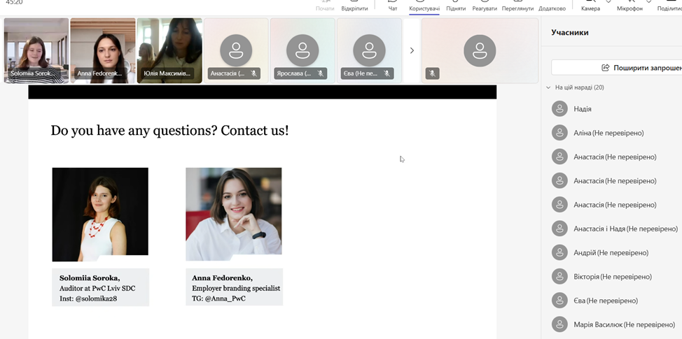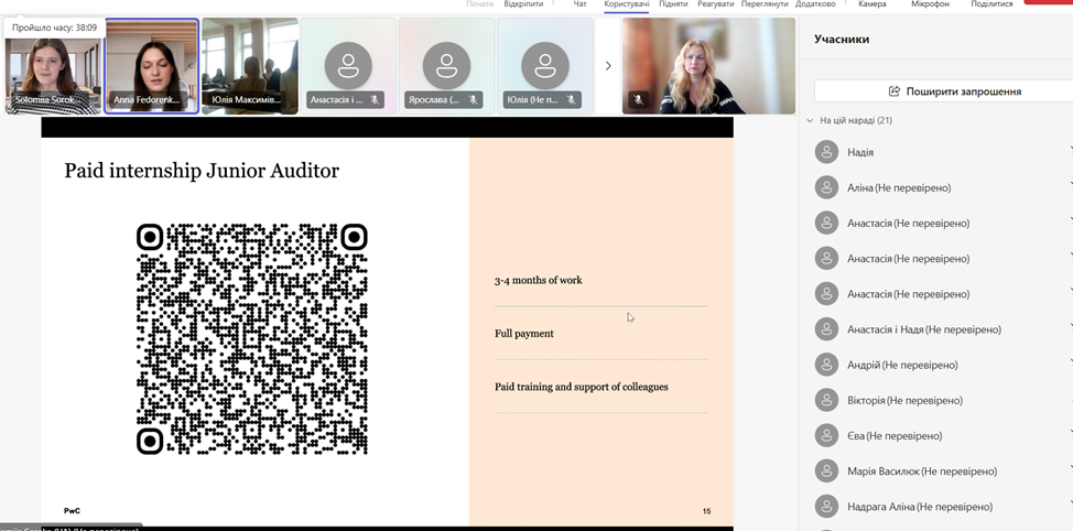 29 вересня 2025 року в рамках співпраці кафедри обліку і оподаткування з аудиторською компанією PwC Lviv SDC відбулася онлайн-зустріч зі студентами спеціальності «Облік і оподаткування».