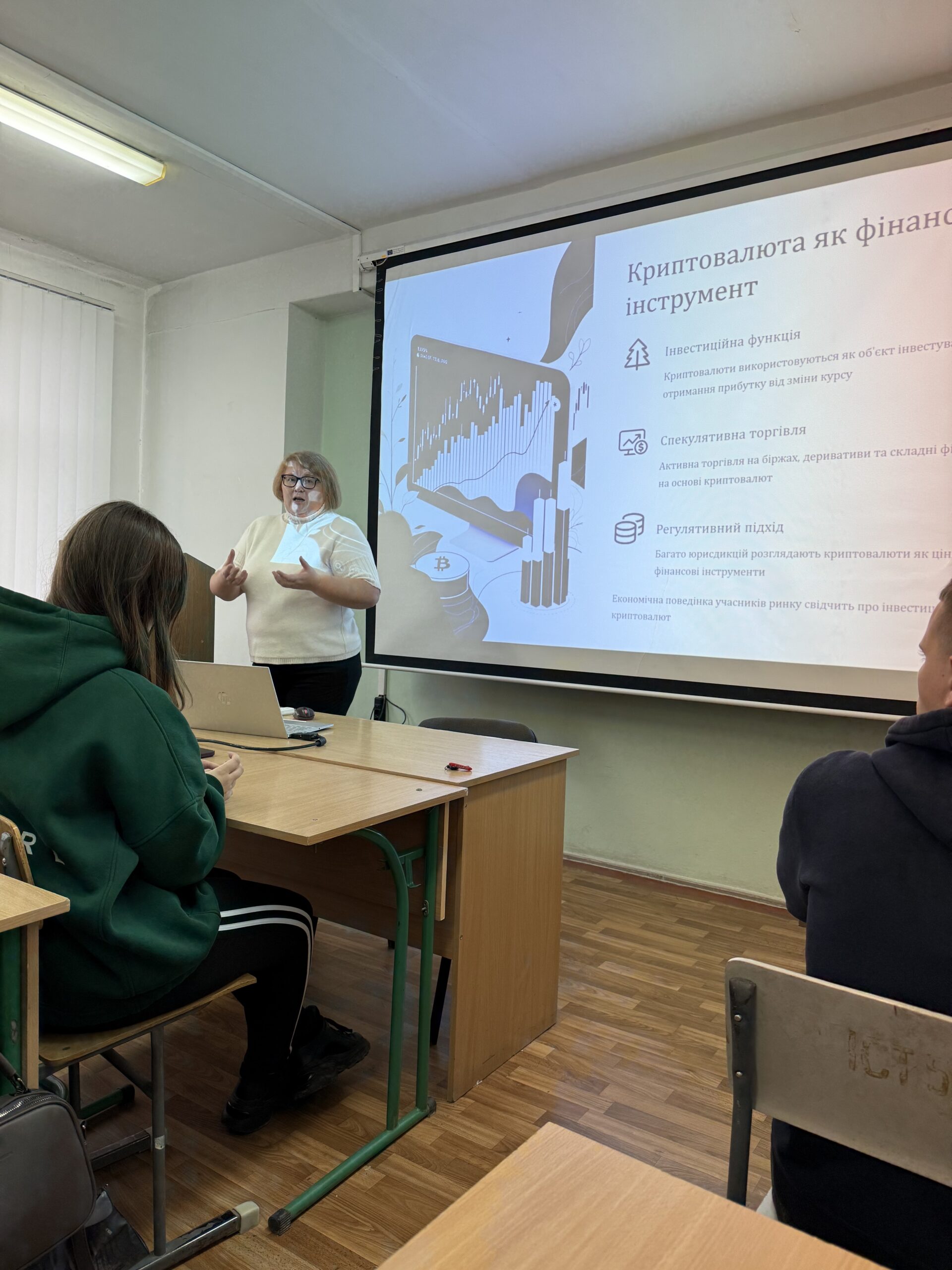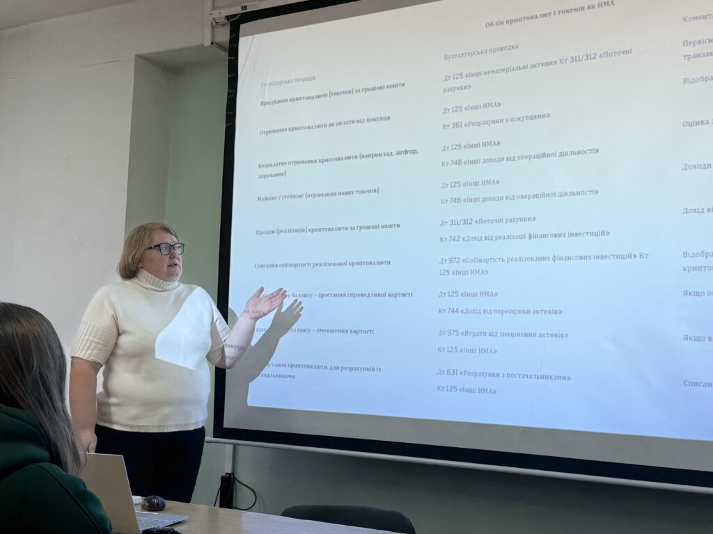 Під час лекції студенти дізналися про сучасний стан розвитку ринку криптовалют в Україні та світі, особливості бухгалтерського обліку криптоактивів, а також про актуальні виклики й тенденції у цій сфері. Окрему увагу було приділено питанням наукових досліджень у сфері обліку цифрових активів та перспективам подальшої співпраці між кафедрами партнерських університетів.