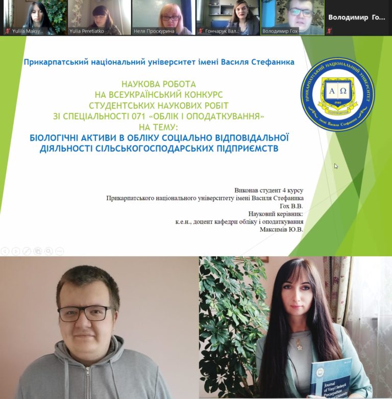 Наш студент представив на конкурс наукову роботу на тему “Біологічні активи в обліку соціально відповідальної діяльності сільськогосподарських підприємств”. Науковий керівник – кандидат економічних наук, доцент кафедри обліку і оподаткування економічного факультету Юлія Максимів.